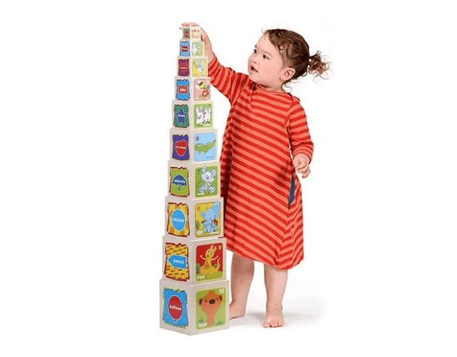 Torre Cubos Encaje Madera Juguete Educativo para Niños.
